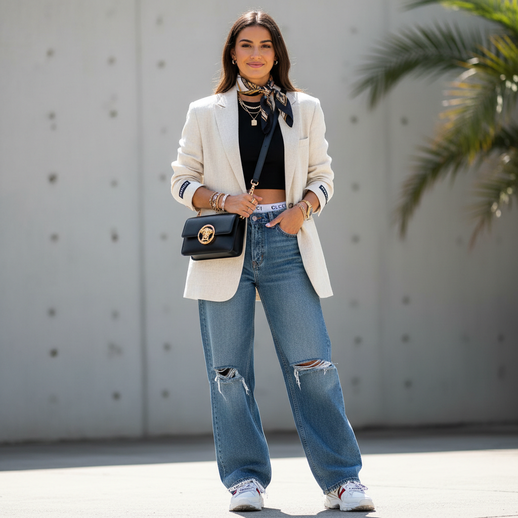 Fashion creator outfit of the day post with brand tags visible