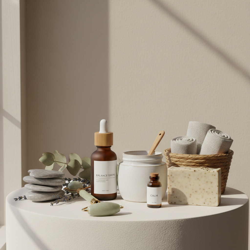 Creator lifestyle shot with wellness products arranged aesthetically