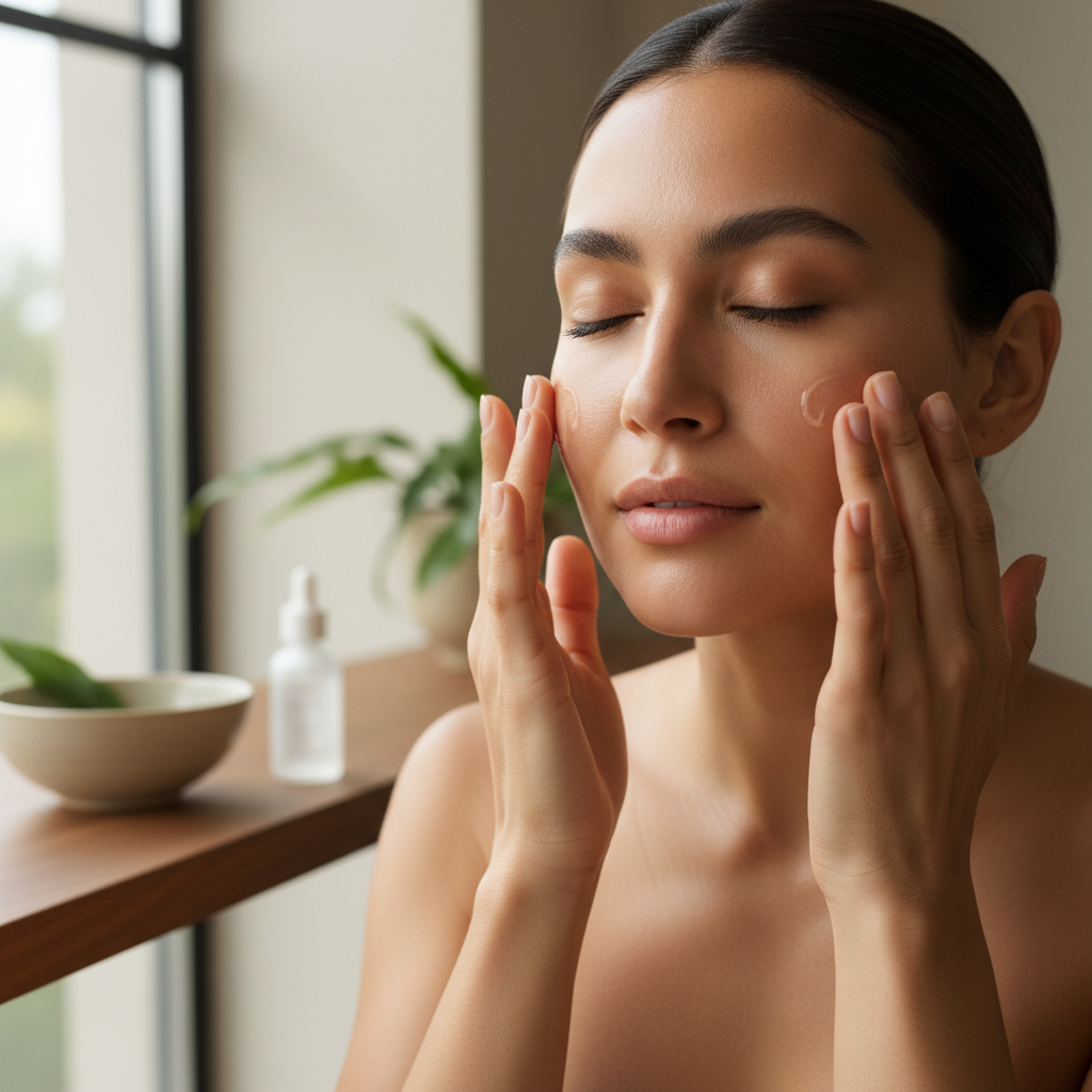 Creator doing skincare routine on camera for authentic content